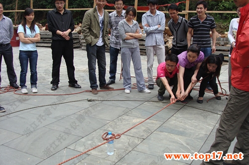 為了豐富我們的白龍?zhí)吨校瑫r(shí)也為了挑戰(zhàn)和考驗(yàn)托普人的堅(jiān)強(qiáng)意志,我們一共開(kāi)展了四個(gè)拓展訓(xùn)練項(xiàng)目:雷區(qū)取水、極速60秒、挑戰(zhàn)五分鐘、畢業(yè)墻。到達(dá)目的地之后,拓展教練迅速將我們以20—30人為一隊(duì)組織團(tuán)隊(duì),每個(gè)團(tuán)隊(duì)起了一個(gè)彰顯自己個(gè)性的響亮隊(duì)名:神龍隊(duì),工兵隊(duì),狼牙隊(duì),亮劍隊(duì),并設(shè)計(jì)了隊(duì)旗、隊(duì)徽,自編了隊(duì)歌,確定了口號(hào)。響亮的口號(hào)響徹整個(gè)白龍?zhí)叮釉鰪?qiáng)了隊(duì)員們的士氣和團(tuán)隊(duì)凝聚力。