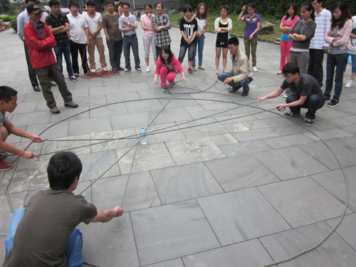 活動項目一:雷區取水,各團隊必須在規定時間內,依靠團隊的協作和智慧將在雷區內的液態炸彈(裝滿水的桶)排除,并安全放在雷區外的彈藥庫;項目二:極速60秒,教練在一個限制區內放置了30張未知的數字信息,各隊成員需派出一名隊員,要在兩次進入限制區的機會內將這些數字信息有小到大的撿出并且排列好;項目三、挑戰五分鐘,隊員需在五分鐘內挑戰完成各個項目;項目四:畢業墻,全體隊員要在不借助任何的物品與工具下,在規定時間內翻越一堵高四米的墻。這些項目看似簡單,卻處處需要智慧。各個隊員親身體驗,參與各個項目之中,并在這種特定環境中去思考、去發現、去領悟,進而對自己、對同事、對整個托普大家庭重新認識、重新定位。